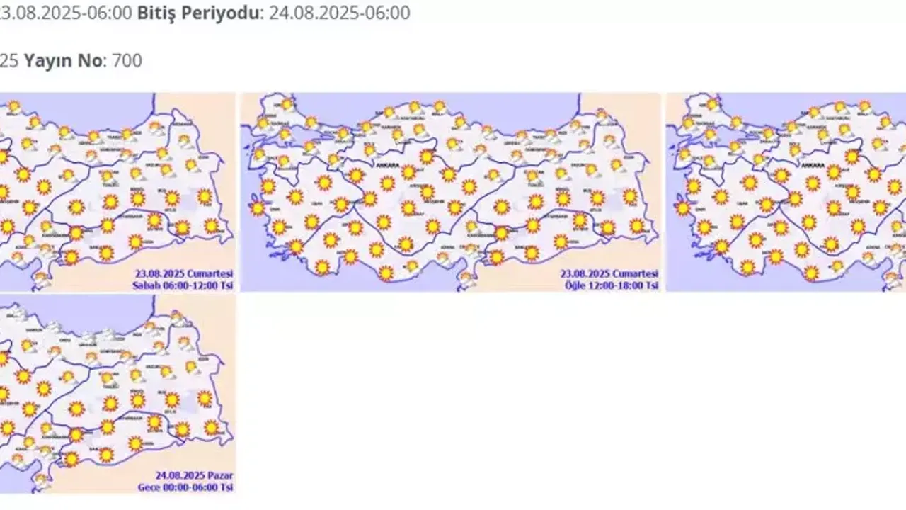 Ege, İç Anadolu, Doğu Anadolu ve Güneydoğu Anadolu bölgeleri az bulutlu ve açık,